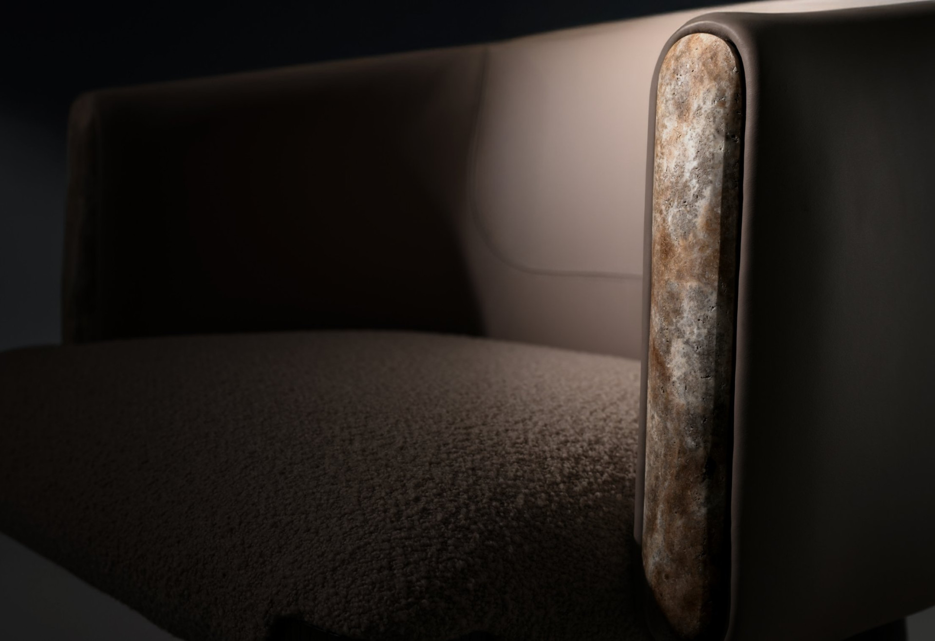 With its marble details and refined construction, Angelit offers a strong material expression. Clean lines and a solid form give the design a grounded presence, reflecting the weight and character of the earth element.