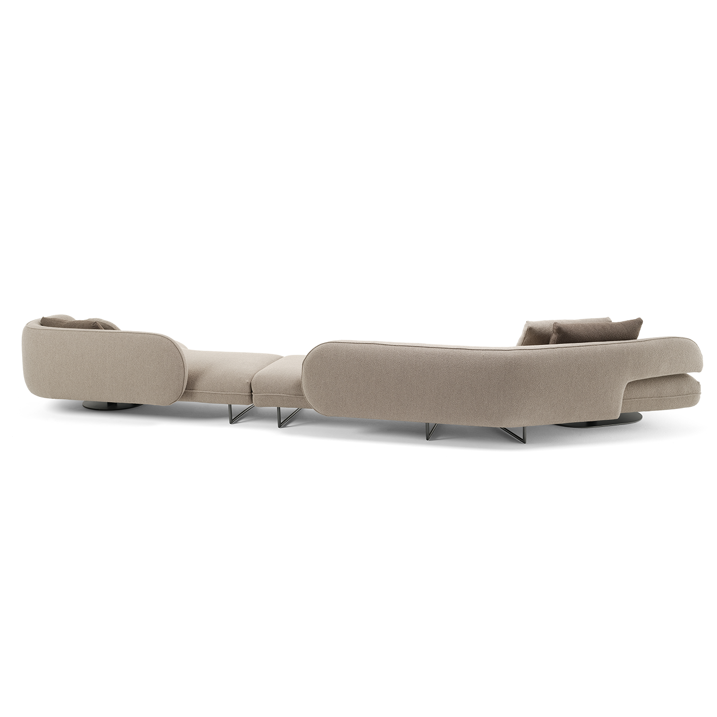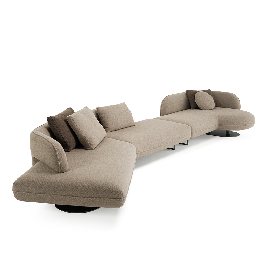 The Around Sofa is characterized by its elegant, curved design radiates sophistication and charm. Its unique shape and graceful curves provide a warm, inviting space for relaxation, lounging, or socializing with friends and family. The Around Sofa is comfortable and crafted to create a warm and welcoming atmosphere in any room.