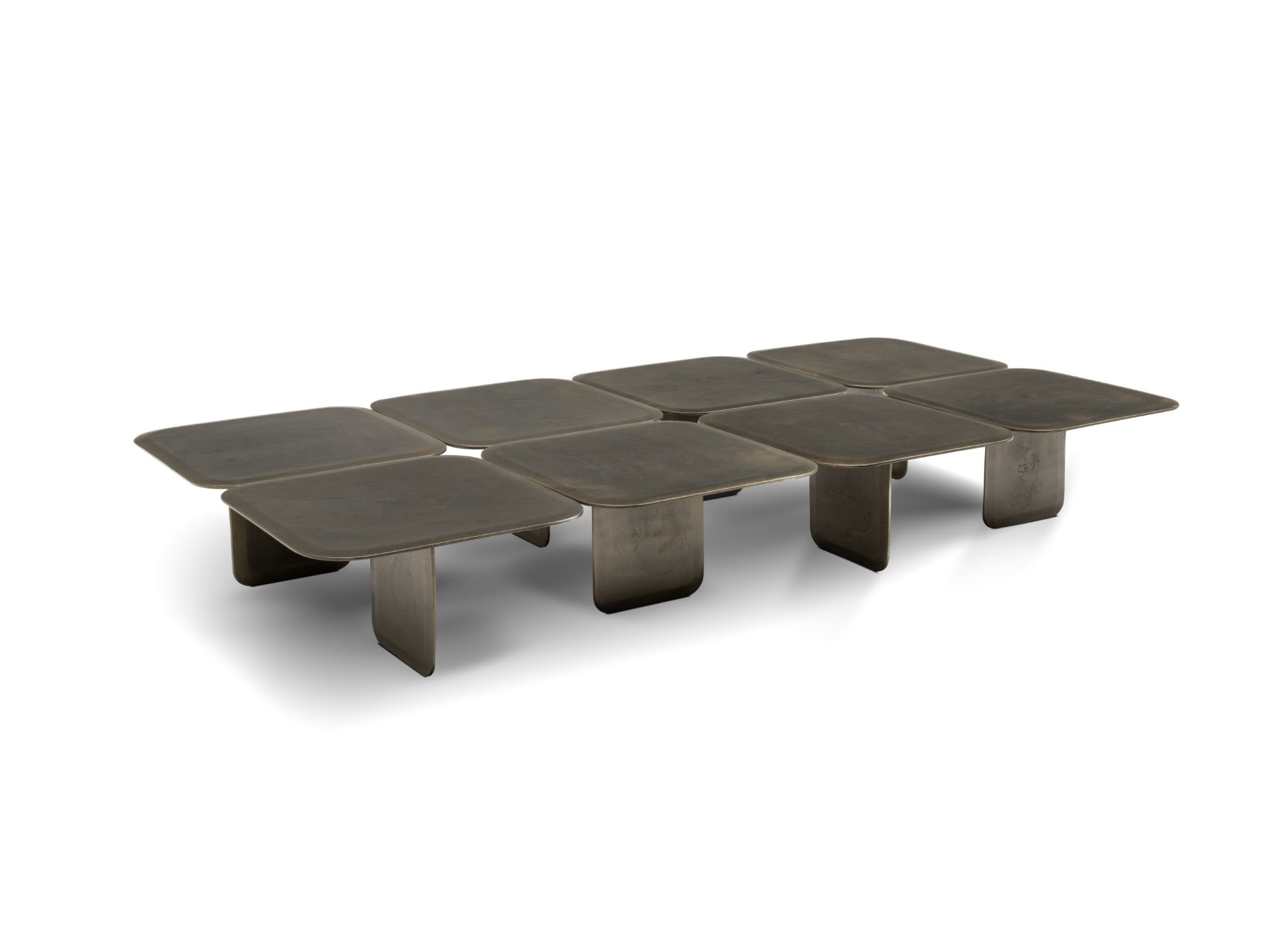 The Avalon Coffee Table is a symphony of structure and rhythm. Crafted from brass oxide metal, its modular design creates a seamless flow of surfaces, like architecture in motion. A statement piece that reshapes the concept of gathering.