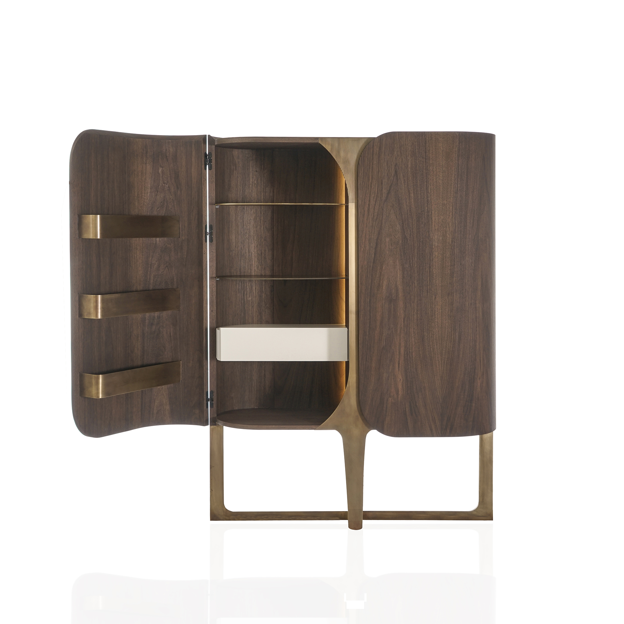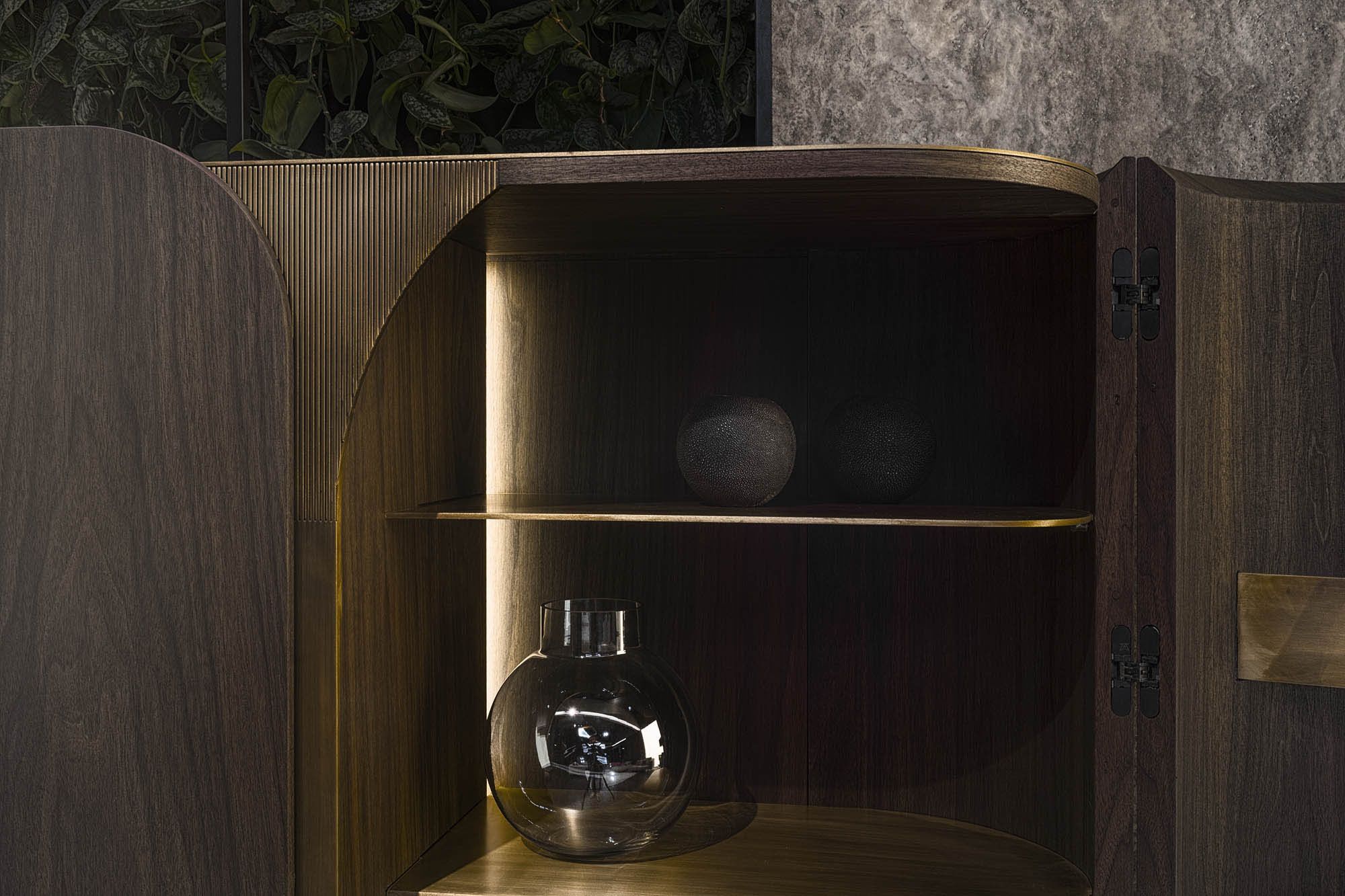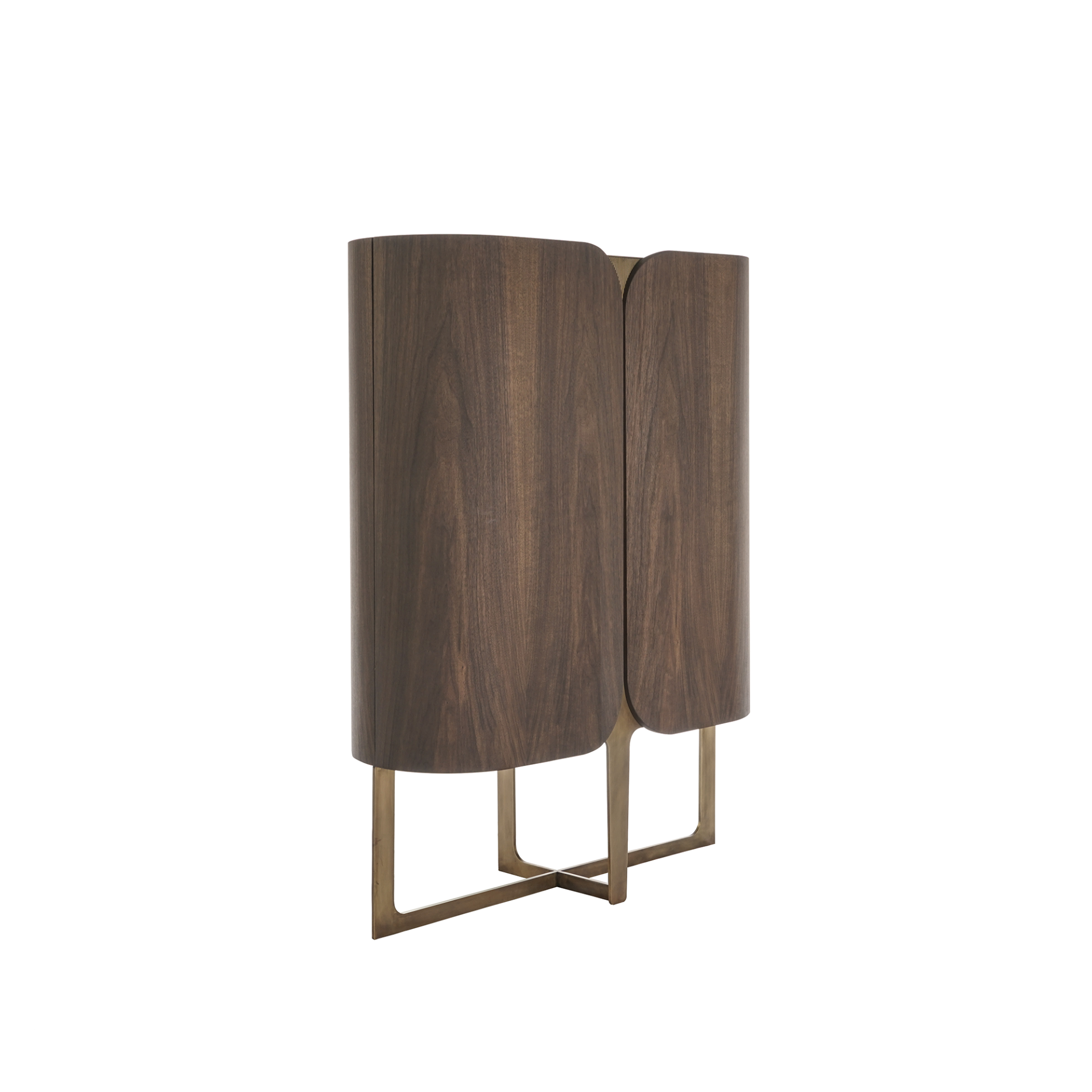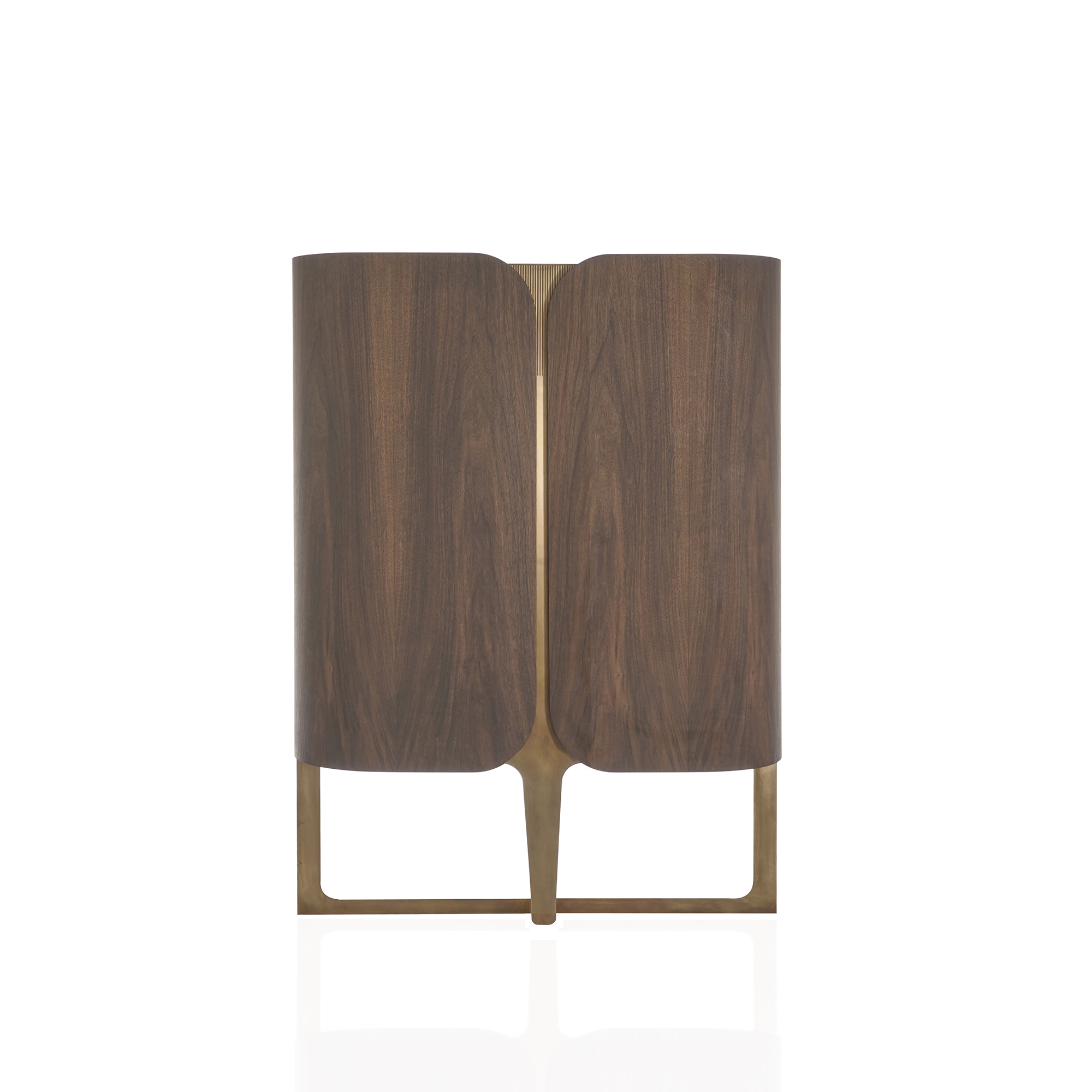 Boji Cabinet is the combination of walnut veneer and aged brass in minimal lines.