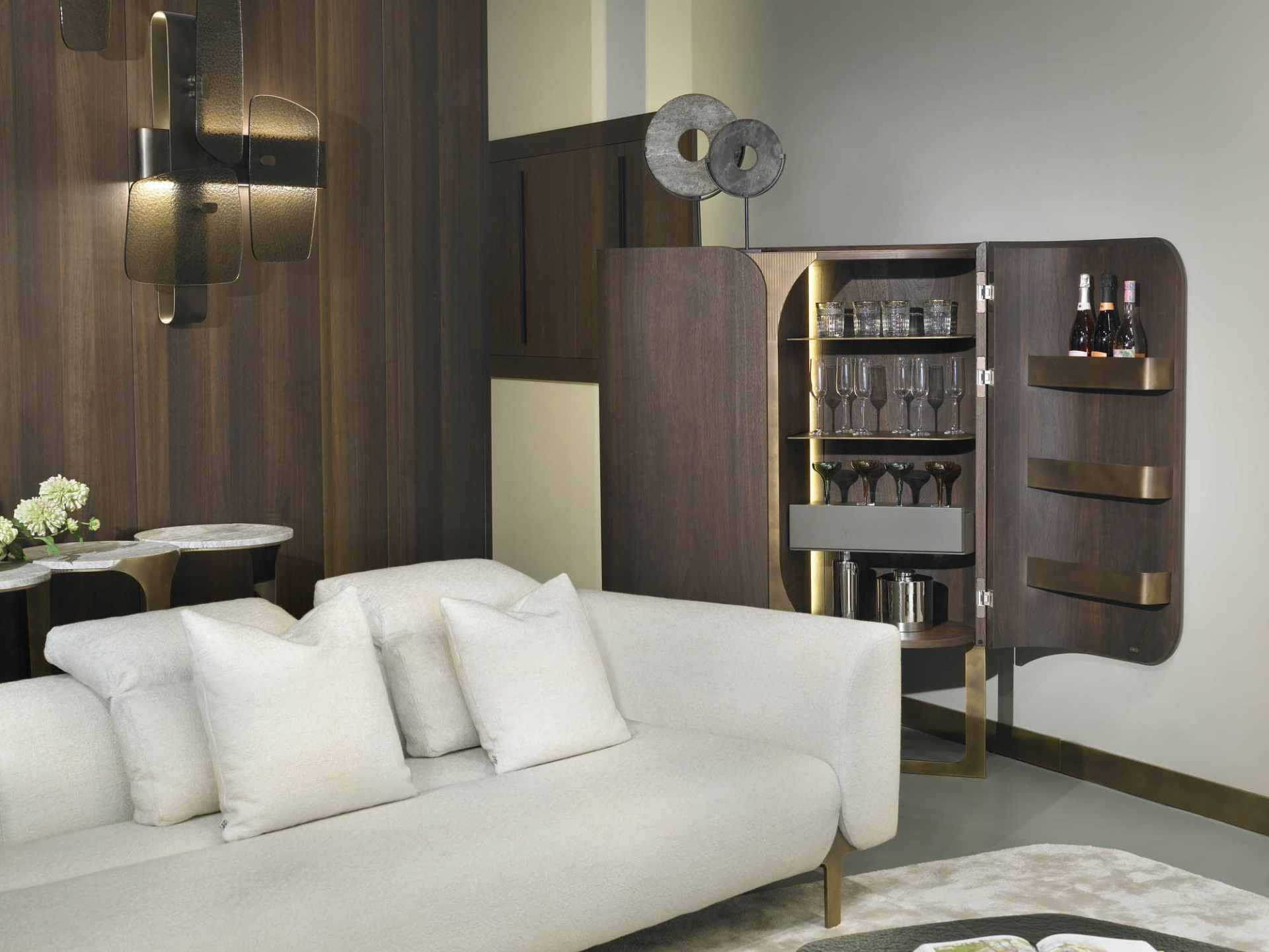 All beauties are hidden in life. Boji Cabinet in which walnut cover and aged brass meet in minimal lines is presented to you as an unmatched design which hides chic and elegant lines in it with lace drawers and led lightings.