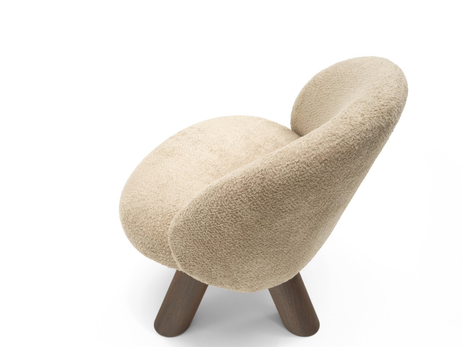 Experience the whimsical charm of the BOO Armchair, featuring three cylindrical wooden legs and rounded, modern cushions for both seating and backrest. This chair is a delightful fusion of fun and contemporary design, promising comfort and style in equal measure.