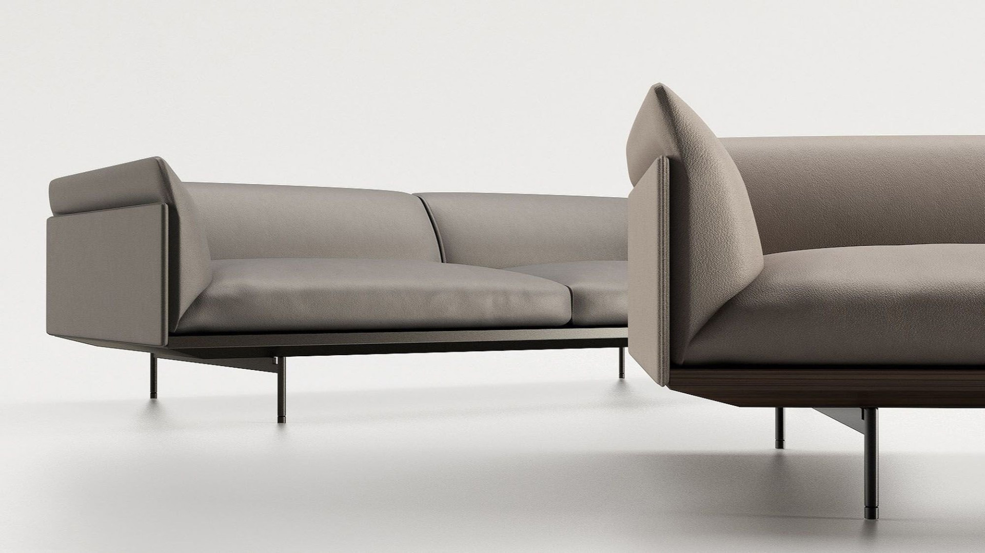 Leather takes all its dimensions within this large format sofa with honest and pure lines.