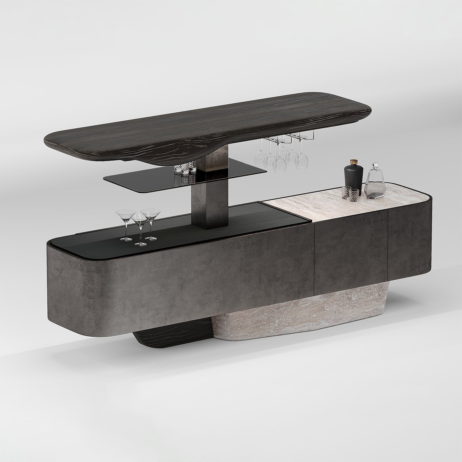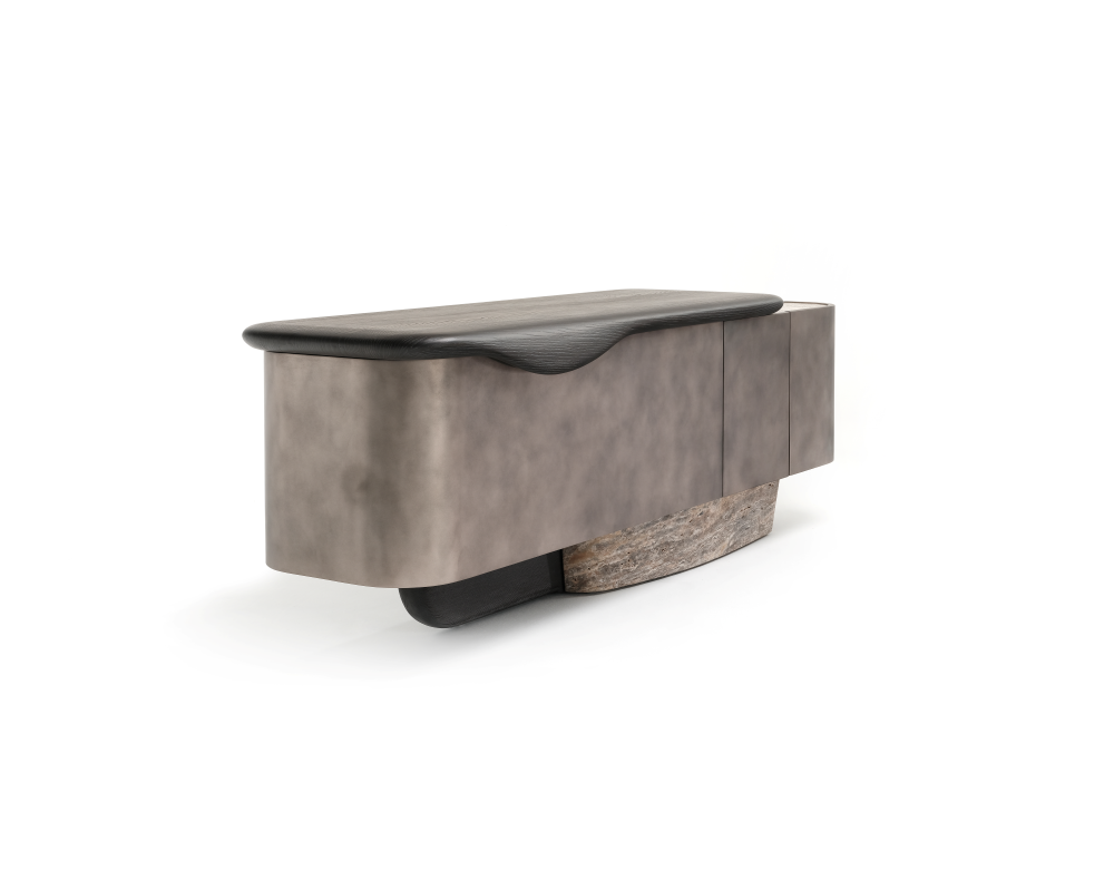 With Dolmen Sideboard, add a remarkable and stunning addition to any dining room or living space. This extraordinary piece of furniture boasts a body-shaped, gigantic marble or wooden column with legs, giving the impression of an epic masterpiece with its sculptural appearance.The Dolmen Sideboard is a true testament to the artistry and craftsmanship of its designers. The intricate details of the body-shaped leg are expertly crafted and offer a unique aesthetic.The top of the Dolmen sideboard is made of high-quality wood, providing a beautiful and durable surface to display your favorite decor items or serve dishes. The combination of the wooden top and the sculptural body-shaped column creates a striking contrast for capture by anyone who enters the room.Experience the perfect blend of artistry and functionality with the Dolmen Sideboard. Its distinctive design, material harmony, and outstanding craftsmanship make it a must-have to pamper your home.