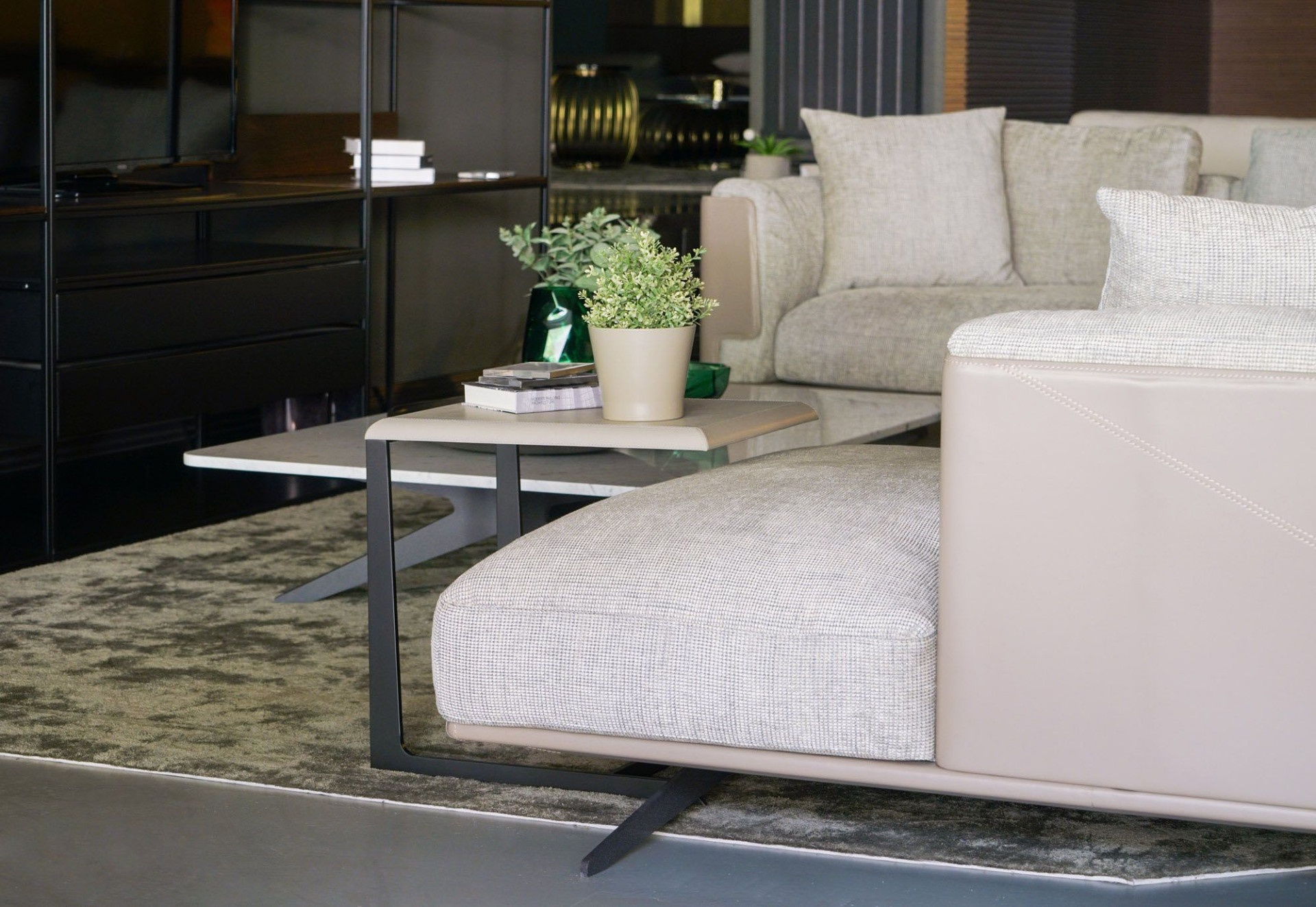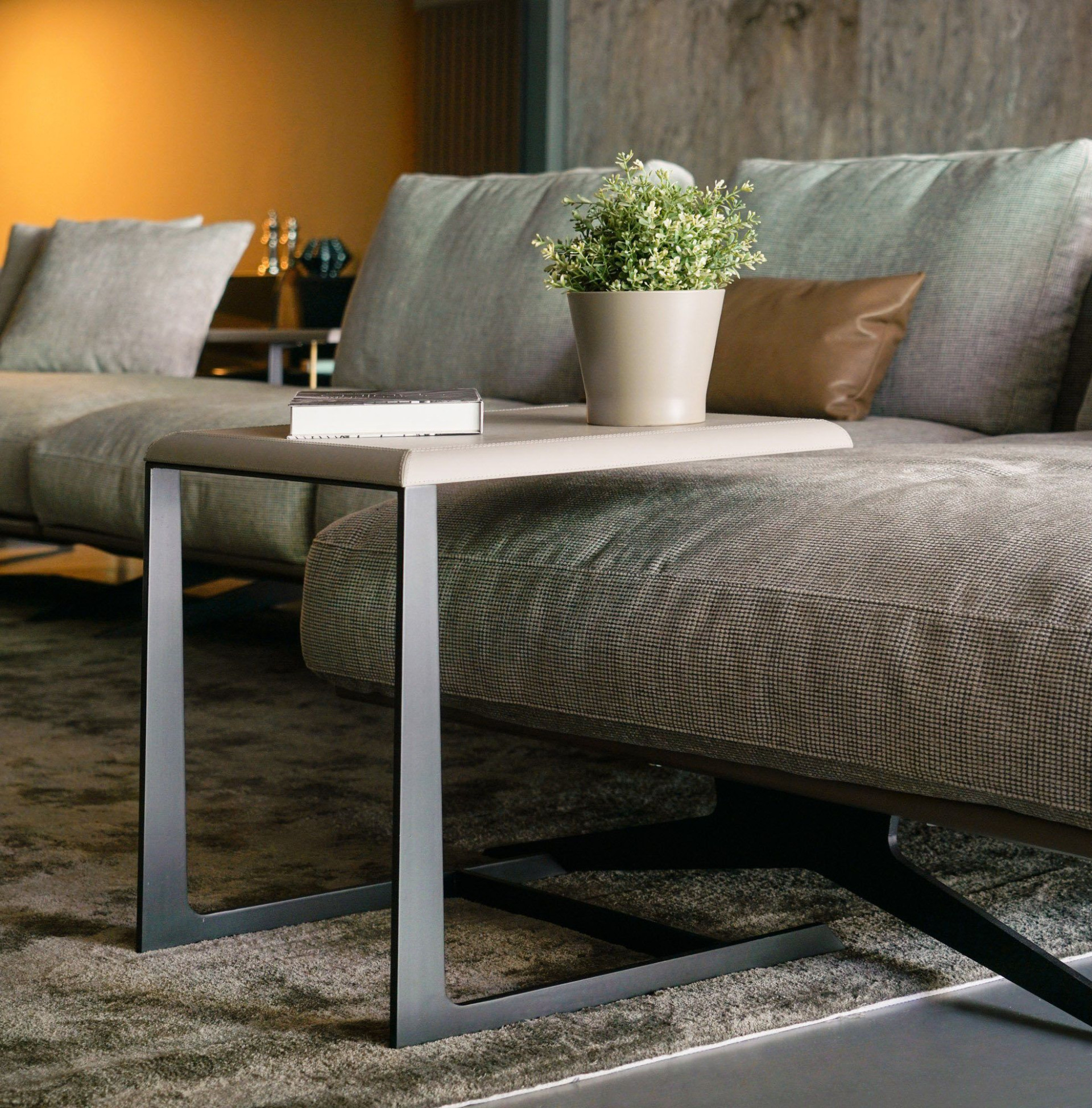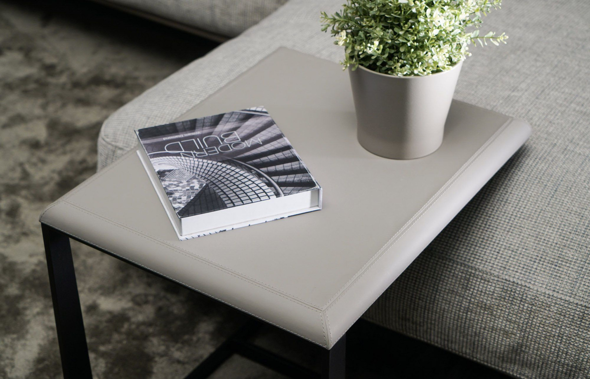 Just the right fit, the Imperious side table is crafted to effortlessly embrace the form of its namesake sofa. Designed with all of the Eclipse Collection principles, the contoured metallic legs support the side tables’ hard leather top which floats beautifully over the sofa, providing great function and reinforcing the lightweight aesthetic of the Imperious design.