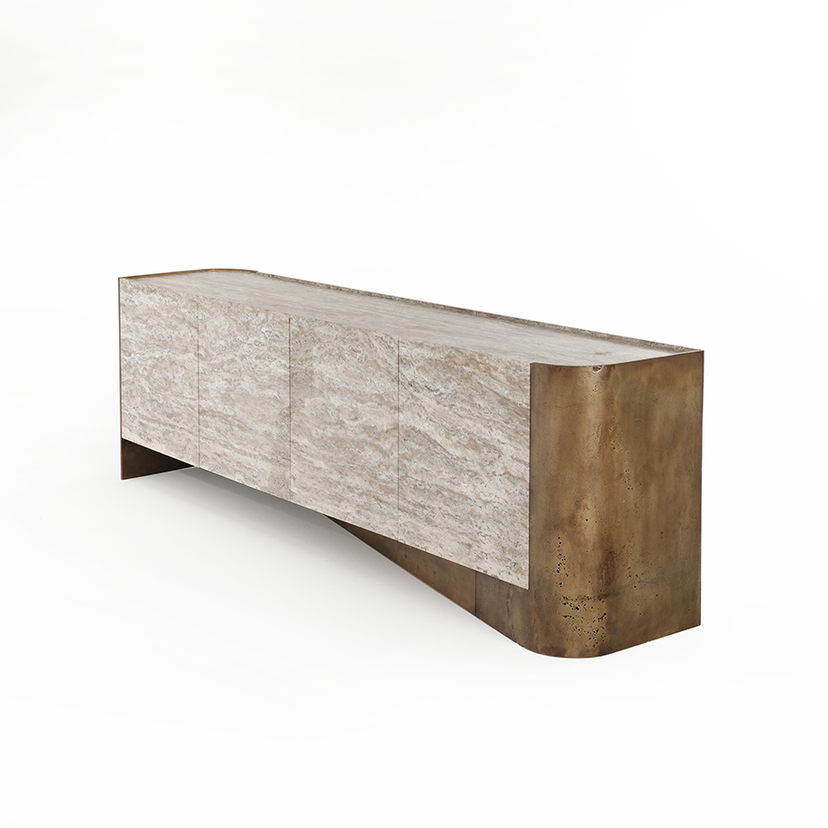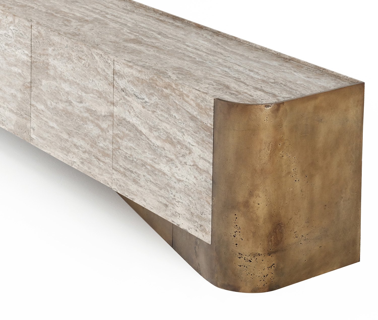 Liam Sideboard is a highly sophisticated product designed by renowned designer Luca Erba. This exquisite piece features a top table and body crafted from premium quality marble, while the foot is elegantly cast in brass, adding a touch of luxury and sparkle to interiors with an extraordinary appeal.