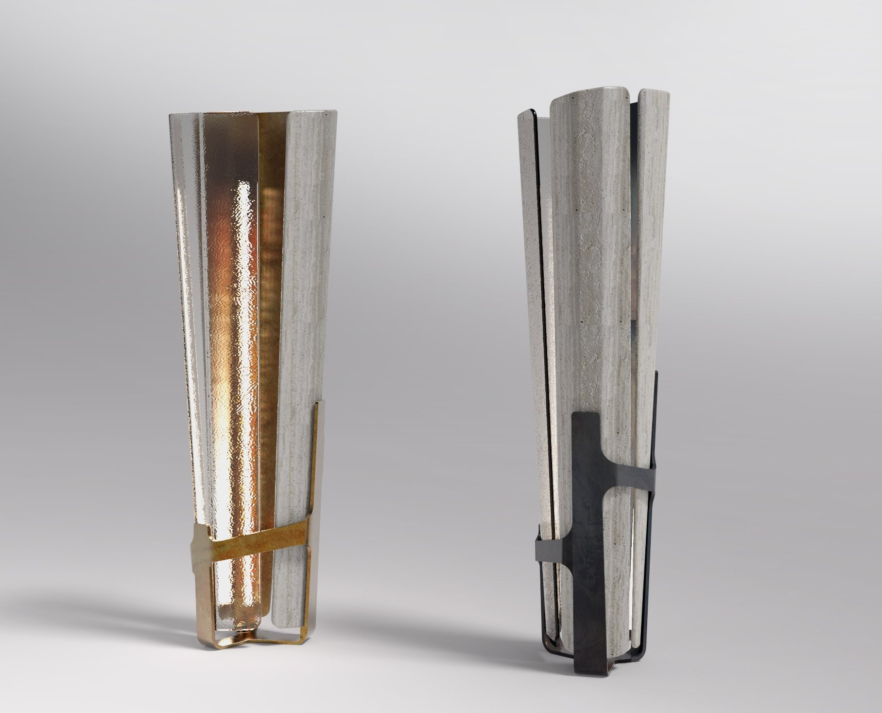 Lotto Floor Lamp is a stunning fusion of raw elegance and contemporary craftsmanship. Inspired by the organic beauty of natural stone and the precision of metalwork, this sculptural luminaire combines travertine with either burnished brass or blackened steel accents. The seamless integration of light within its structured form casts a warm, diffused glow, highlighting the textures and materials in a refined, artistic expression.