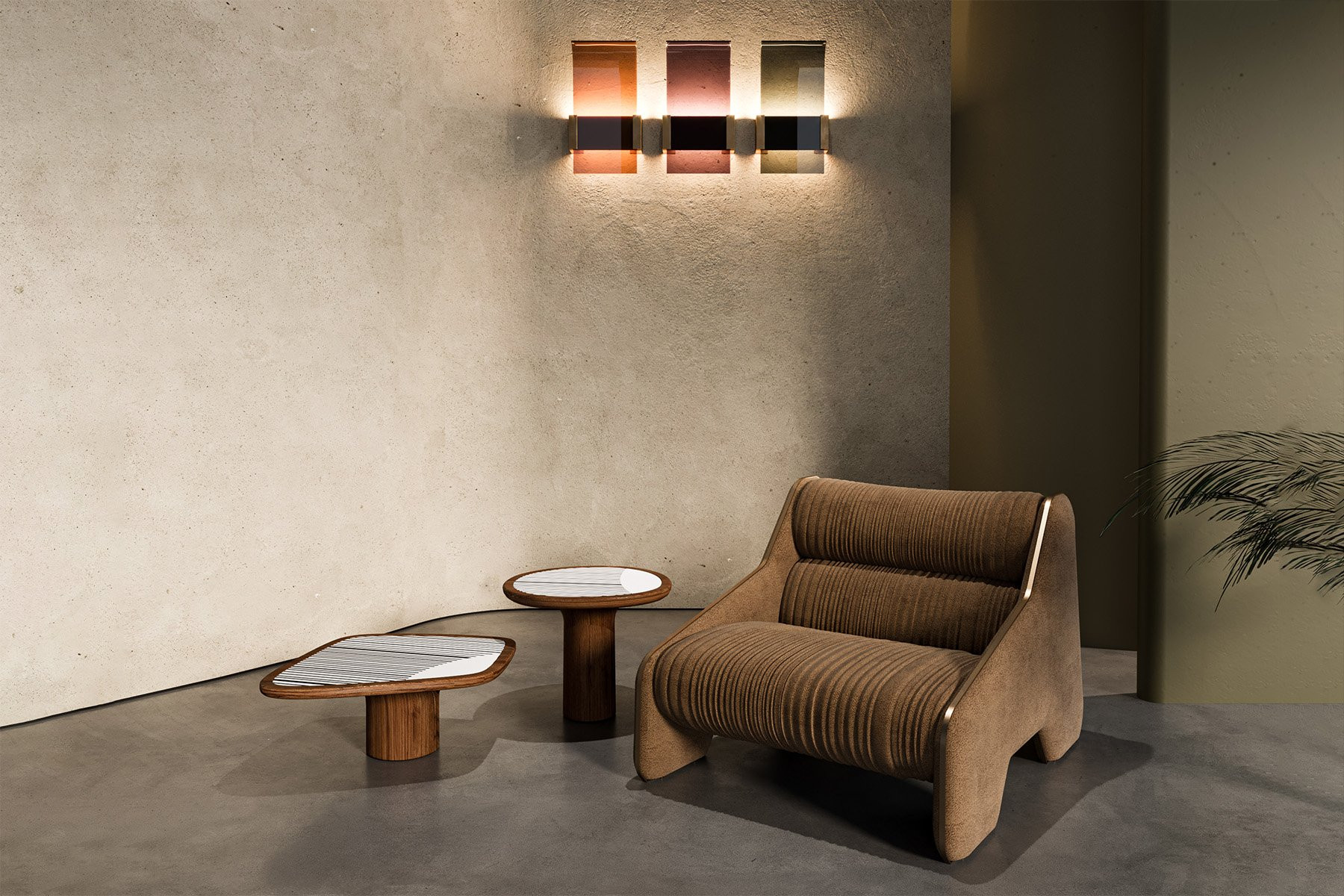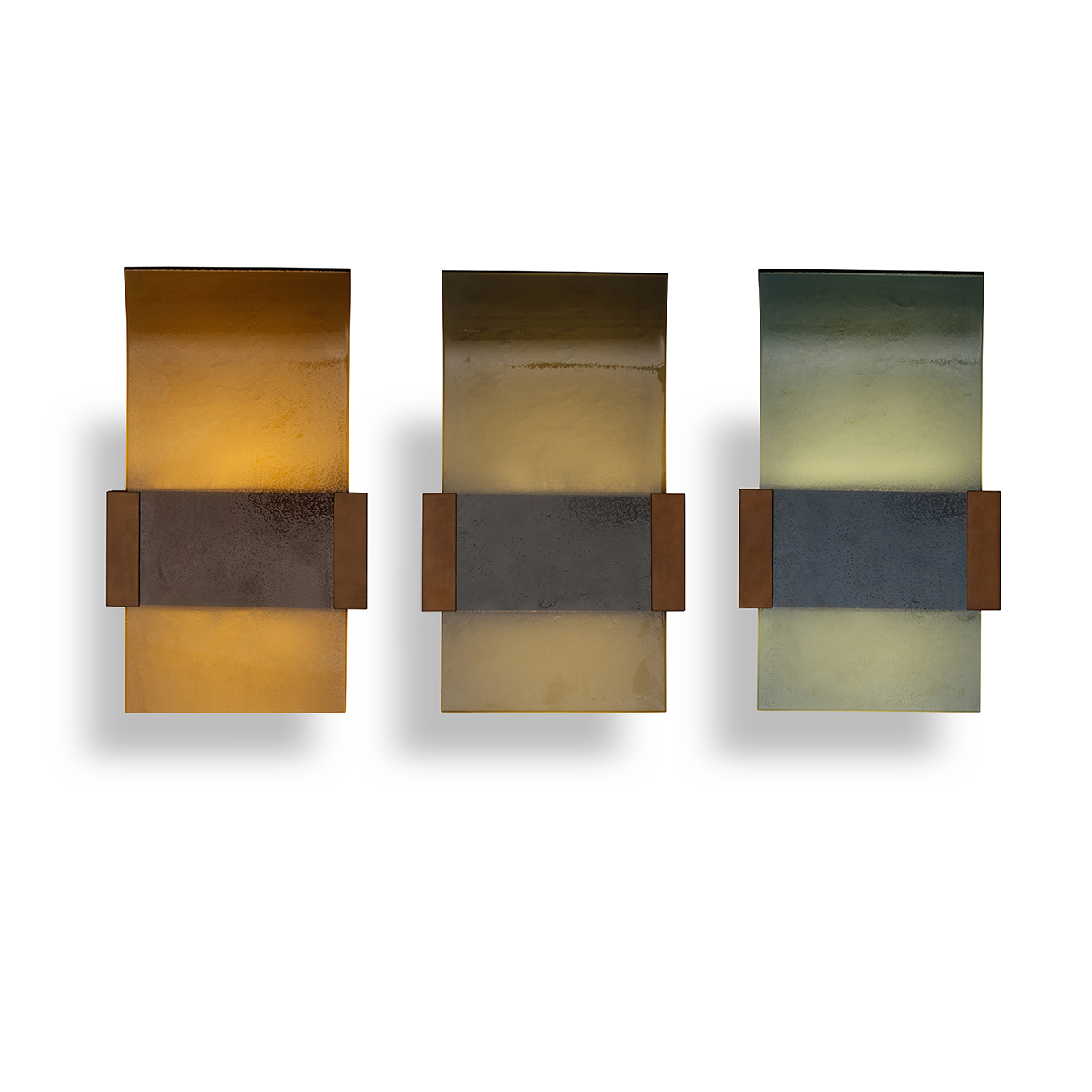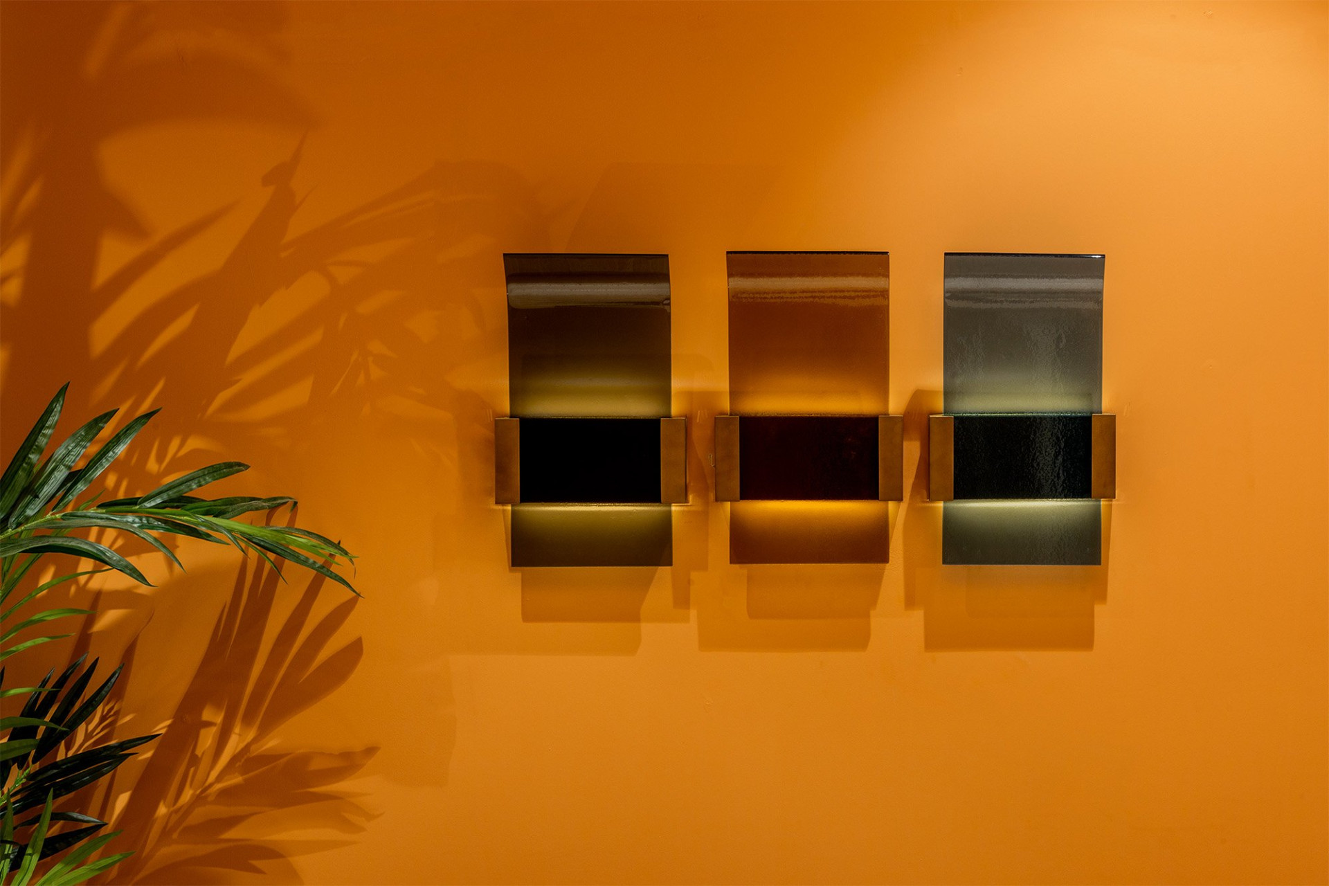 Widely regarded as the father of abstract expressionism and the leading colorist of the 20th century, Henri Matisse once said that he “sought to create art that would be a soothing, calming influence on the mind, rather like a good armchair." And that soothing effect came to life on his cutouts, his simple geometric forms, distilling the object's essential character. Matisse Wall Sconce demonstrates the same ideas; to create a calming effect and a pacifying atmosphere in any interior space. The product is composed of three rectangular glass shades and two-way LED bulbs attached to a metal frame, which comes in a medley of color options. Suitable for every public and private space, the Matisse Wall Sconce extends endlessly due to its modularity and adjusts to any style with the help of vast color options of the handmade, slightly scrolled tinted glass shades.