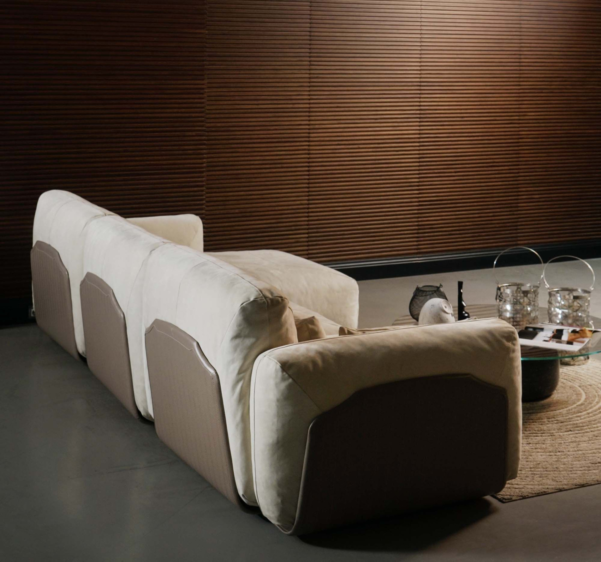 Elegantly designed for plush comfort, the form of the Petrus modular sofa maintains contemporary aesthetics, gently expressing the versatility.