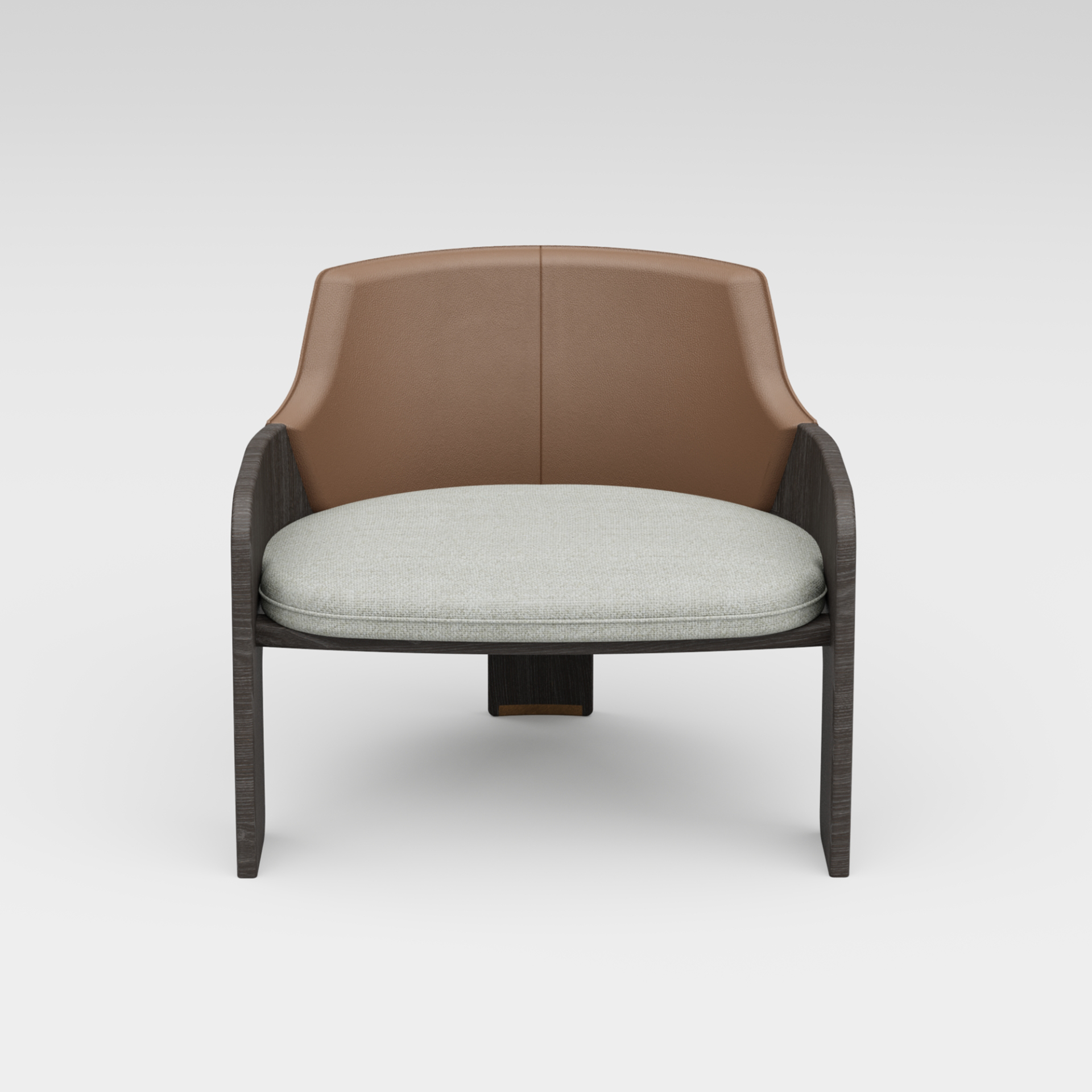 A comfortably balanced product, Soul Armchair displays the perfect harmony of three different materials used in its construction. The wood-veneered plywood crust, which enclaves a metal crescent frame, constructs the main character of the chair. Meticulously stitched and padded backrest, which requires excellent leather craftsmanship, comes in various leather and nubuck alternatives, whereas the seating pad can be fabric or leather. An elegant metal stripe detail mounted on the back foot adds extra gleam to the design. The armchair offers ultimate comfort with its slightly reclined back that is extra padded for waist support.