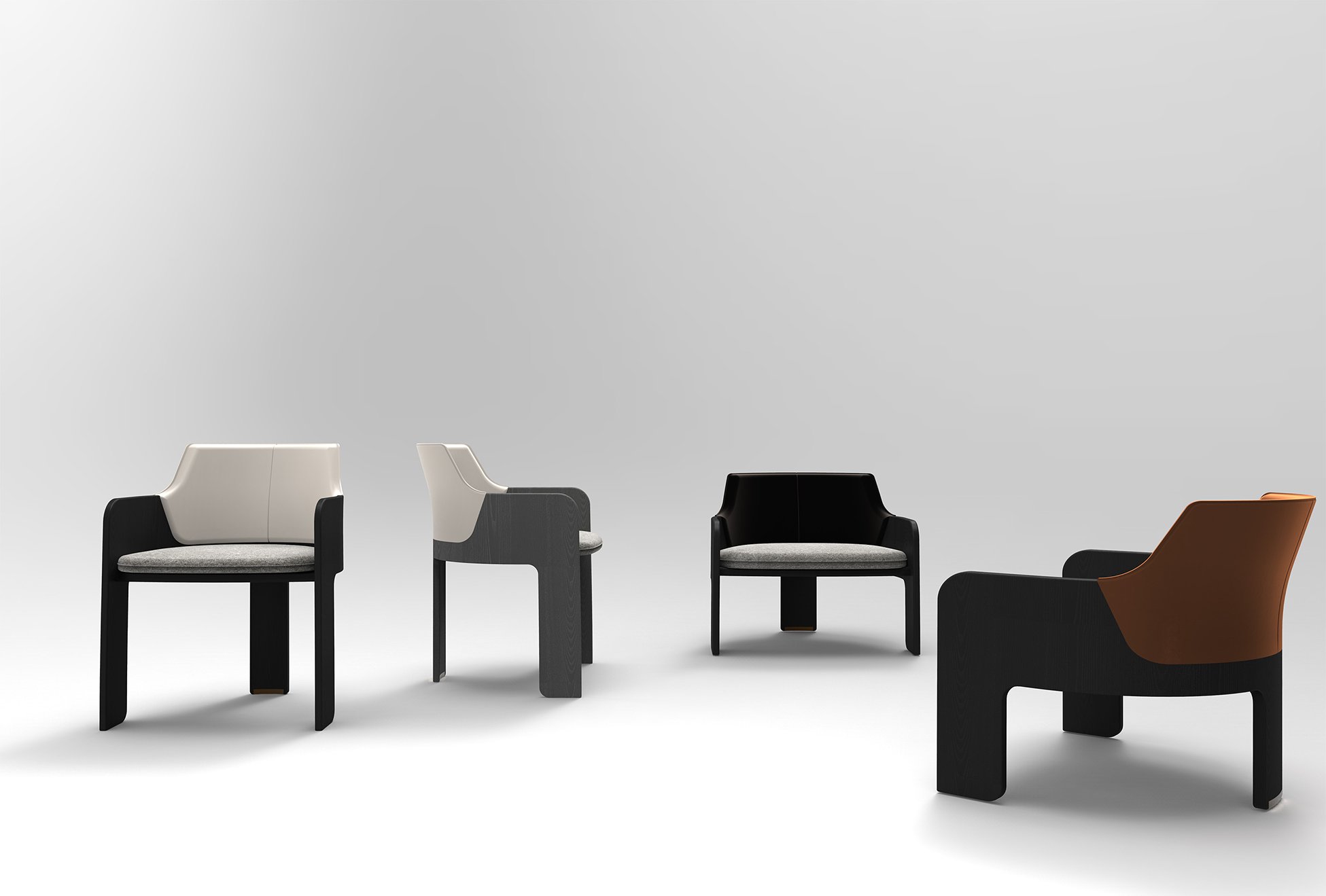 Soul Armchair is conceived as seats with a dynamic attitude and their sinuous lines.
