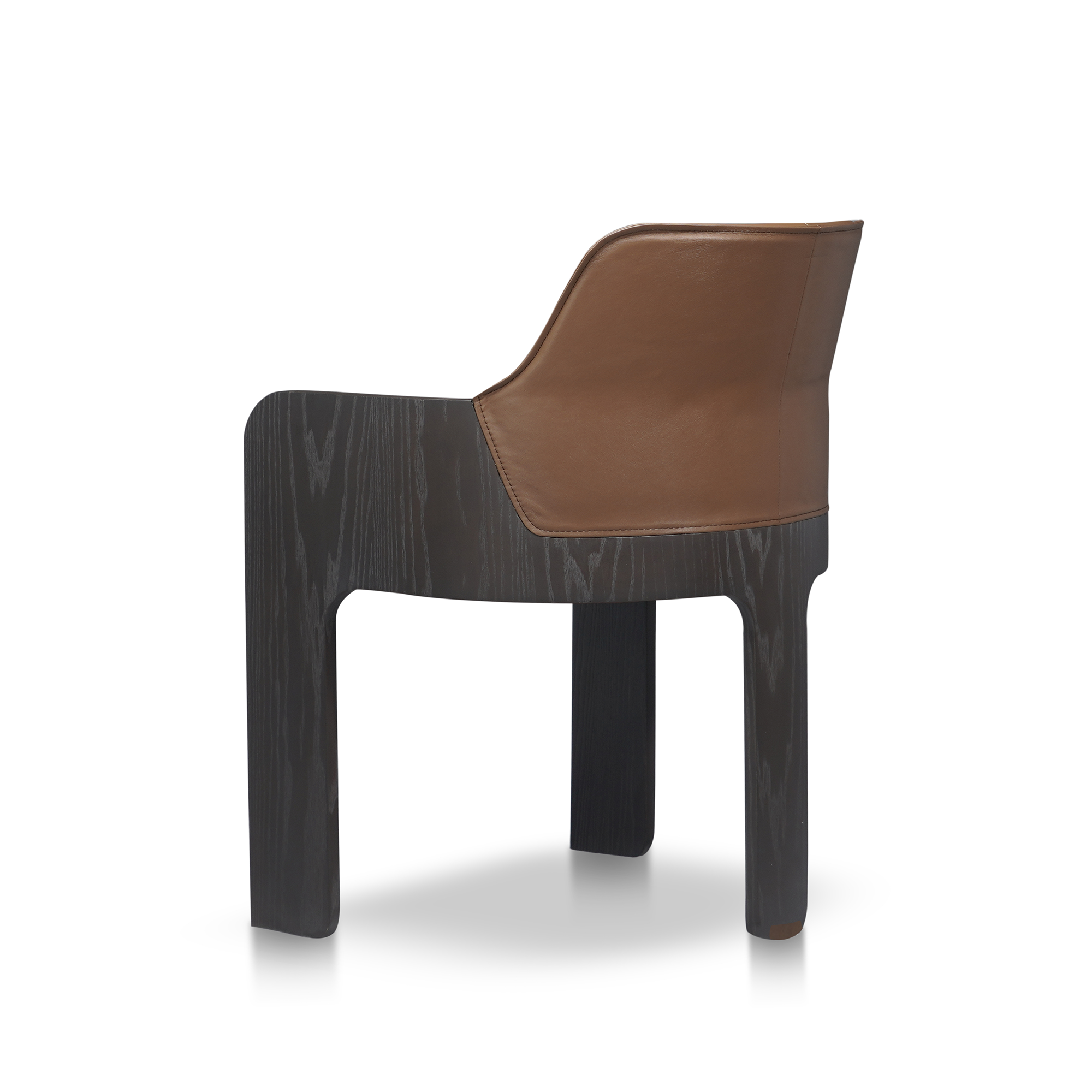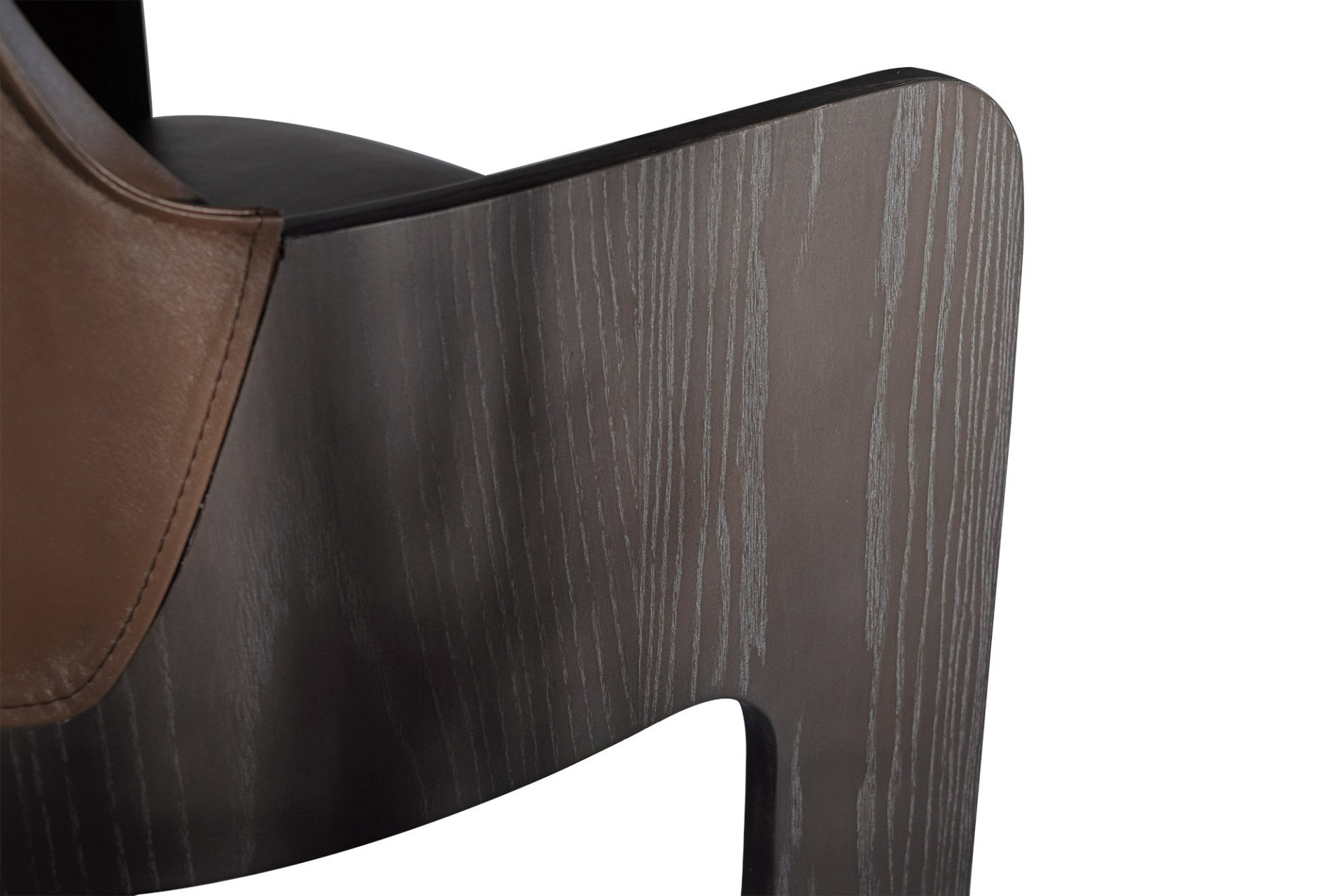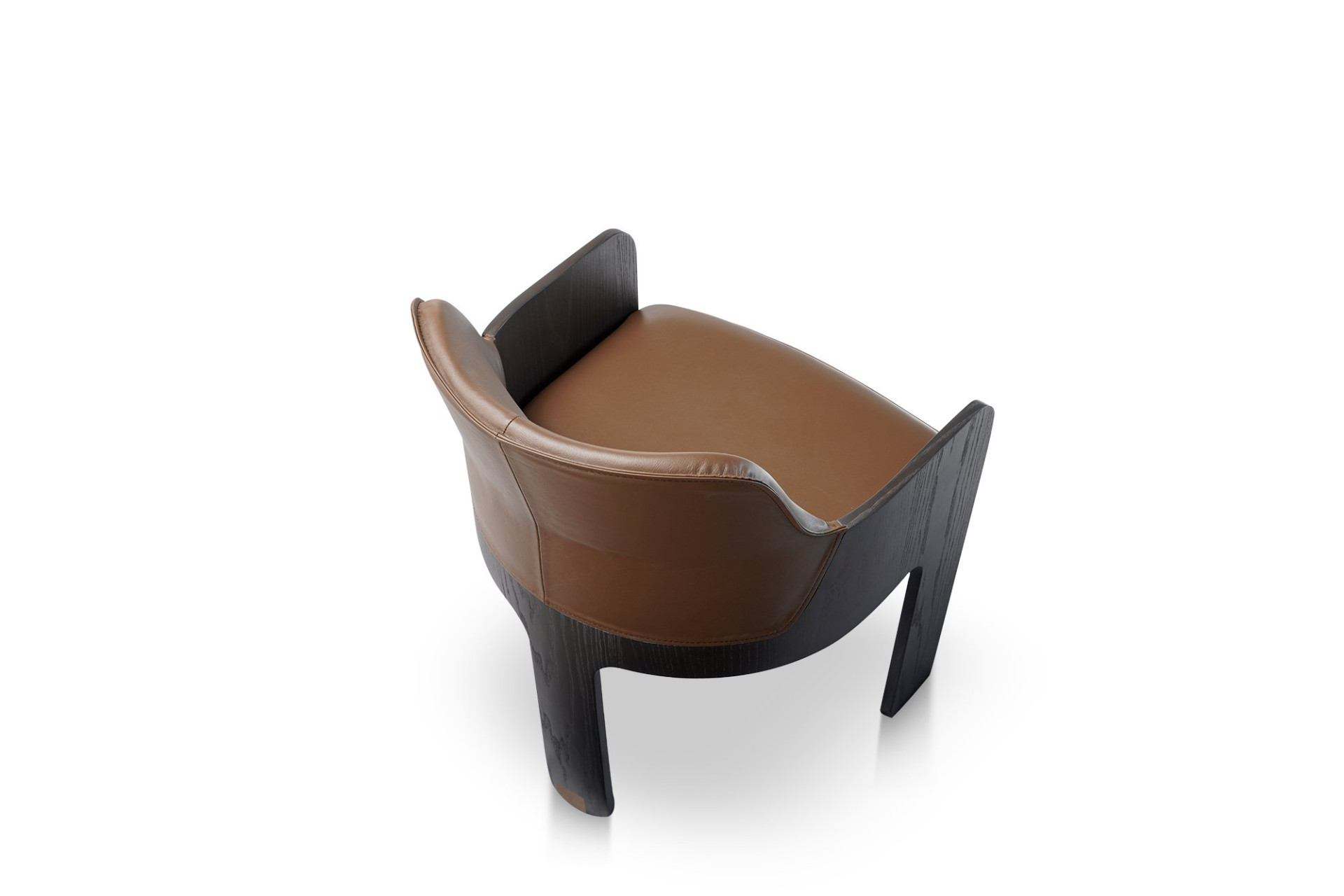 A compact version of the Soul Armchair, and a regular companion of the Leaf and Titano series, Soul Chair suggests a formal yet comfy sitting experience. An impeccably secure and sound product, the Soul Chair demonstrates the perfect harmony of three different materials used in its construction. The wood-veneered plywood crust, which enclaves a metal crescent frame, constructs the main character of the chair. Meticulously stitched and padded backrest, which requires excellent leather craftsmanship, comes in various leather and nubuck alternatives, whereas the seating pad can be fabric or leather. An elegant metal stripe detail mounted on the back foot adds extra gleam to the design.