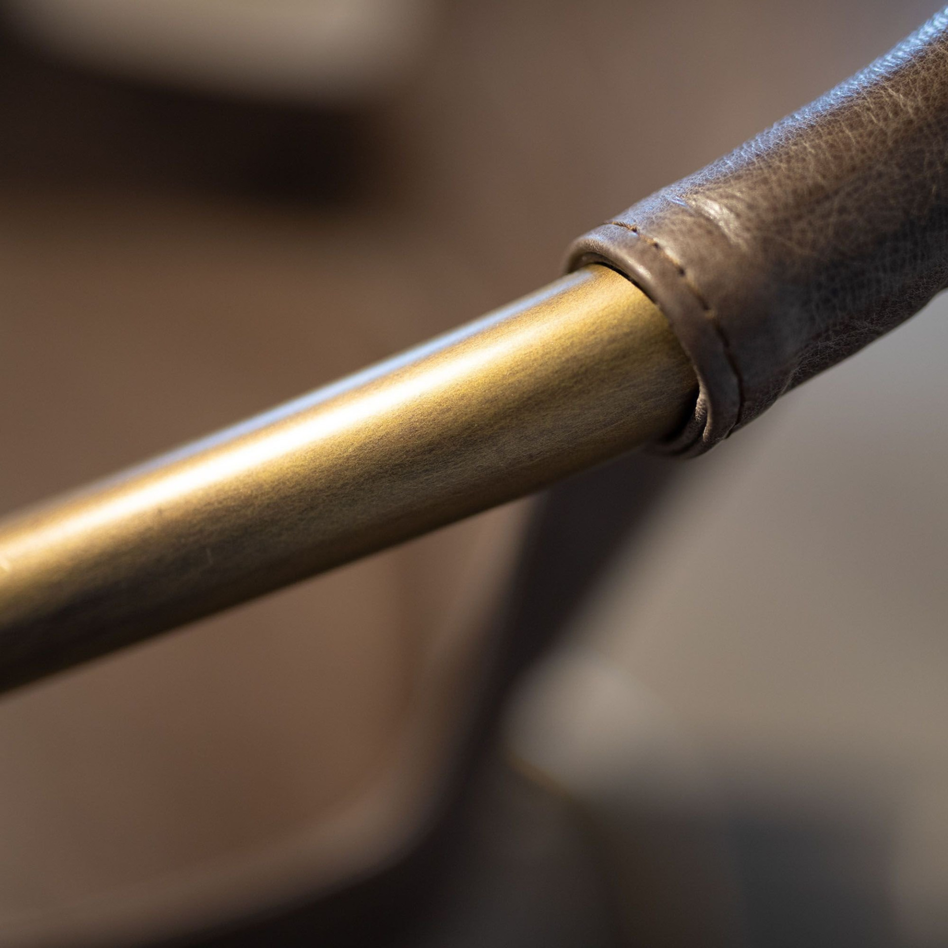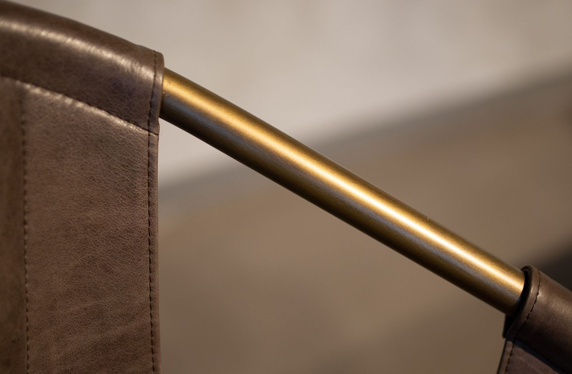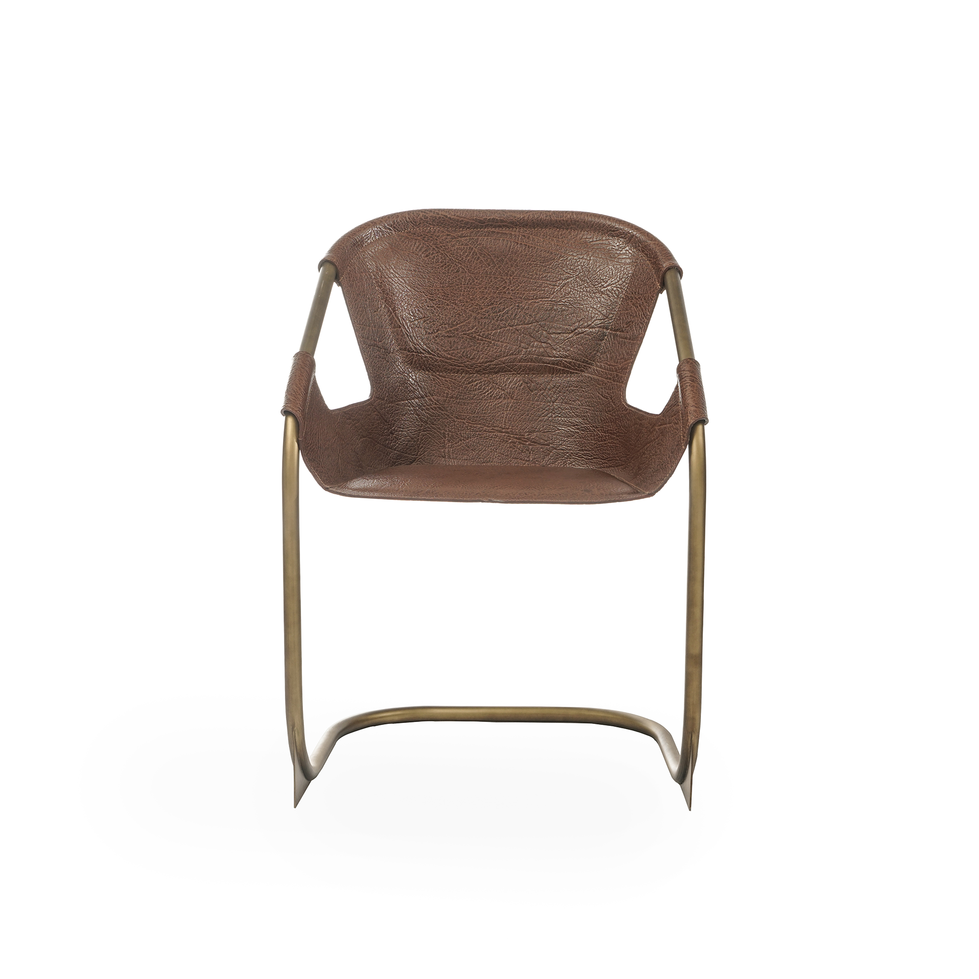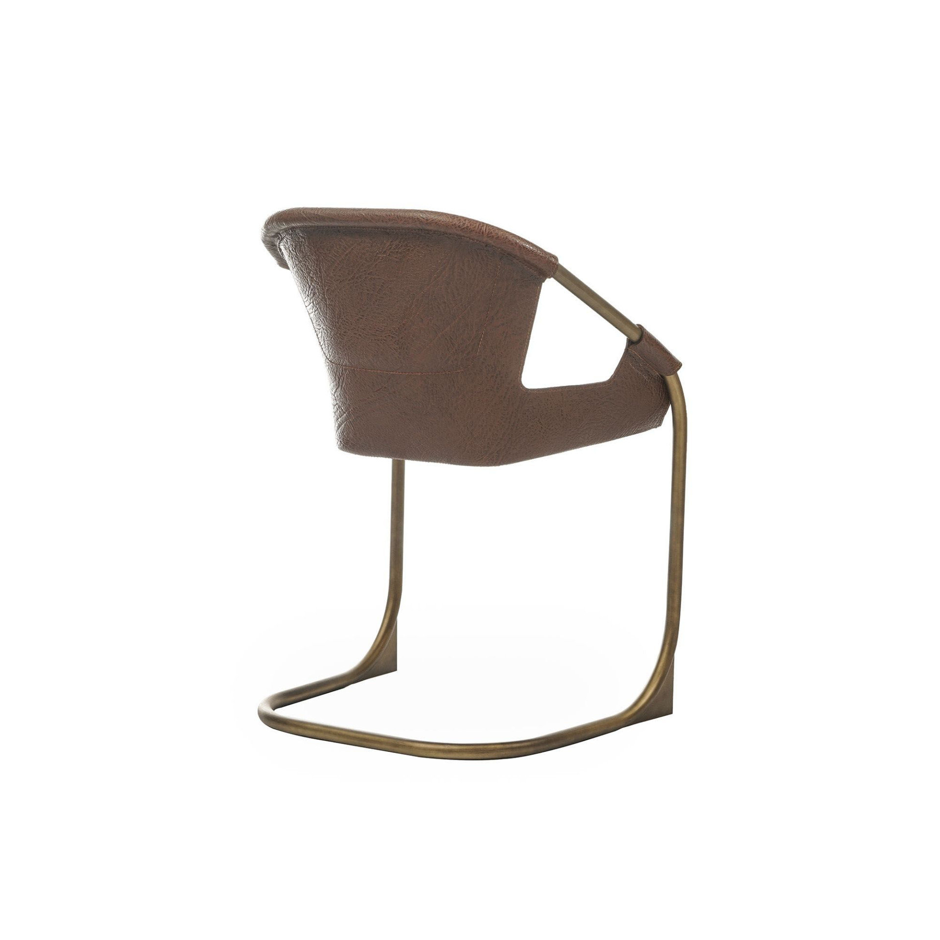 Zahir Chair brings the perfect balance of life to your home with its hard leather cover, aged brass feet and striking design.