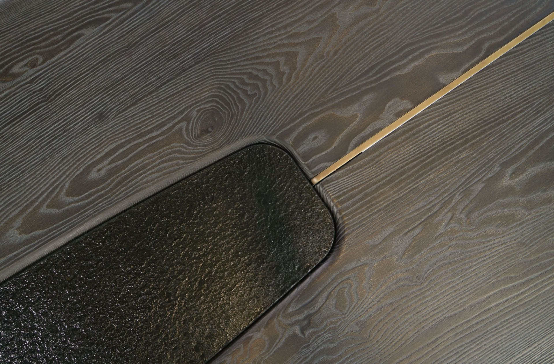 Koyu renkli masif dişbudak ve füzyon camın ahengi.